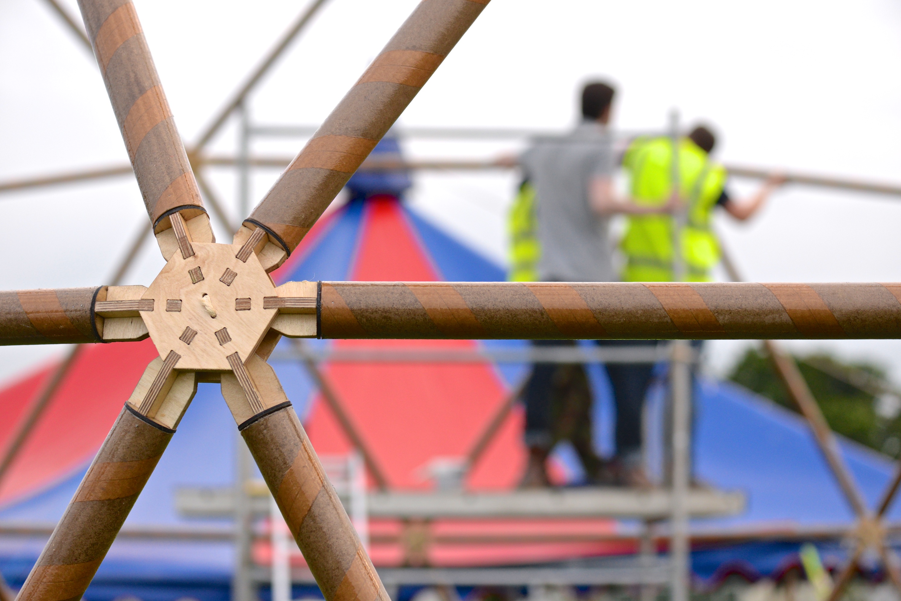 The final prototype was successfully assembled at the Global Green area during 2014 Electric Picnic Music Festival.The prototype stood rain and adverse climate conditions with no apparent loss of structural strength although further tests in a more controlled environment need to be carried out to ensure stability in the long term. Additionally, structural analysis of the dome and finite element simulations for the connectors will be required to adjust paper tube sections and connector dimensions.